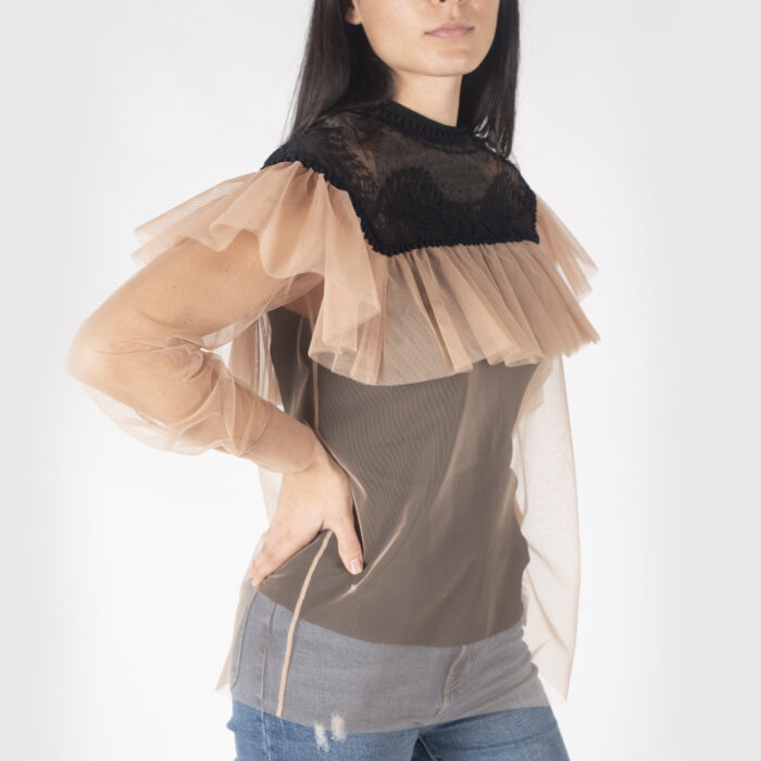 Splendida blusa di Lucille, color nero e panna.